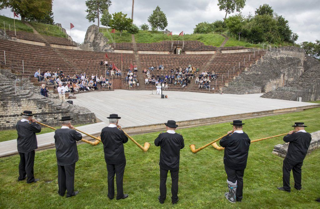 Natur- und Kuhhörner gehören zu den ältesten Blasinstrumenten überhaupt. Sie hatten ihre Funktion ursprünglich in der Signalgebung. Das heutige Alphorn, wie es in der Schweiz gespielt wird, ist ein rund 3,4 Meter langes Holzrohr. Es verläuft von unten nach oben konisch (verjüngend in Richtung Mundstück). Es können ausschliesslich Töne innerhalb der Naturtonreihen gespielt werden. Alphörner haben je nach Länge eine andere Grundstimmung. Es gibt Einzelbläser und Gruppen. Ebenso sind Büchel an den Bewertungsvorträgen zu hören. Die Alphornbläserinnen und Alphornbläser stellen sich an einem Jodlerfest den Juroren an Orten im Freien.
